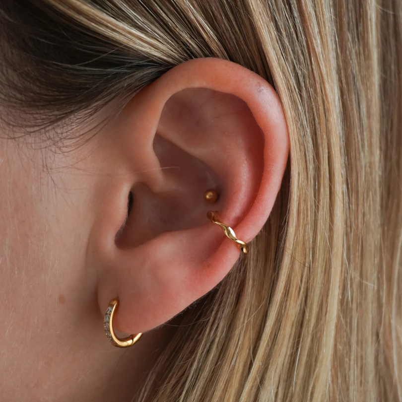 Soms is minder echt meer. De minimalistische gedraaide earcuff houdt het simpel met een strakke, gedraaide vorm die je look afmaakt zonder teveel aandacht te trekken.