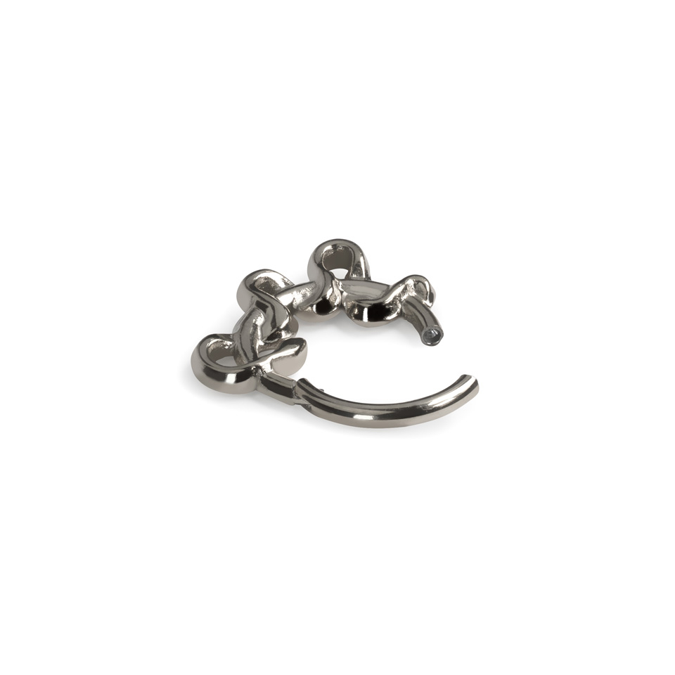 Deze naar voren gerichte ring met een slangenontwerp zal er fantastisch uitzien in verschillende piercings, waaronder een septum, conch, daith en rook. Gemaakt van chirurgisch staal, is het sieraad waterproof en geschikt voor de meeste huidtypen. De scharniersluiting maakt het makkelijk om de ring in en uit te doen.
