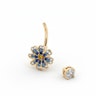 Deze schattige navel barbell is gemaakt voor crop top seizoen. Het sieraad heeft een bloem gemaakt van kleine blauwe steentjes met een centrale gele steen. De bovenste bal heeft een doorzichtige steen.