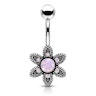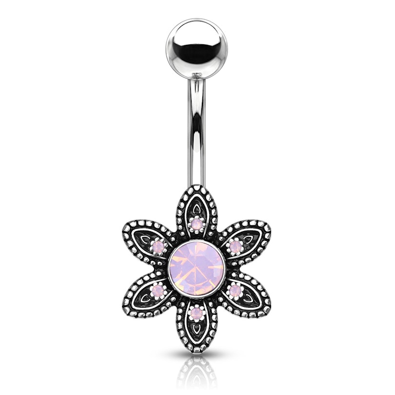 De hele bloem is uit messing gemaakt en gecoat met een antiek zilveren kleur, waaraan het zijn donkere uiterlijk te danken heeft. De bloemblaadjes werden bovendien met een patroon voorzien waardoor het sieraad er levendig uitziet. De rest van het juweel bestaat uit hoogwaardig chirurgisch staal. Bekijk meer informatie onder het kopje 'bijkomende informatie'