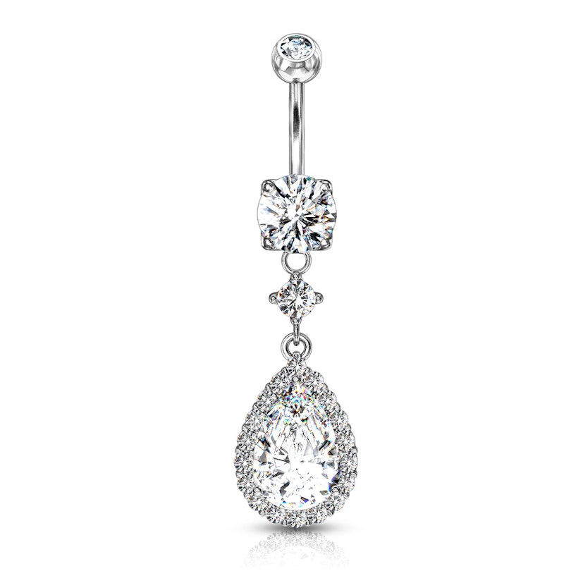 Naam: Navelpiercing met druppelvormige steen in hanger
