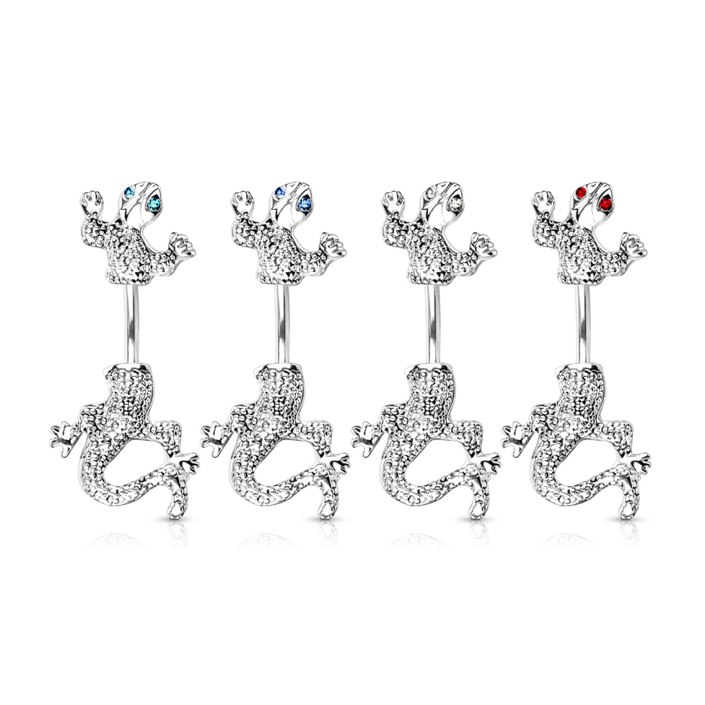 Navelpiercing met een hagedis