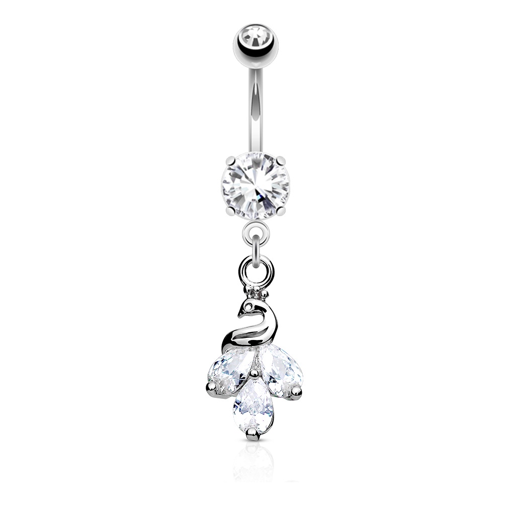 Navelpiercing met een pauw als hanger