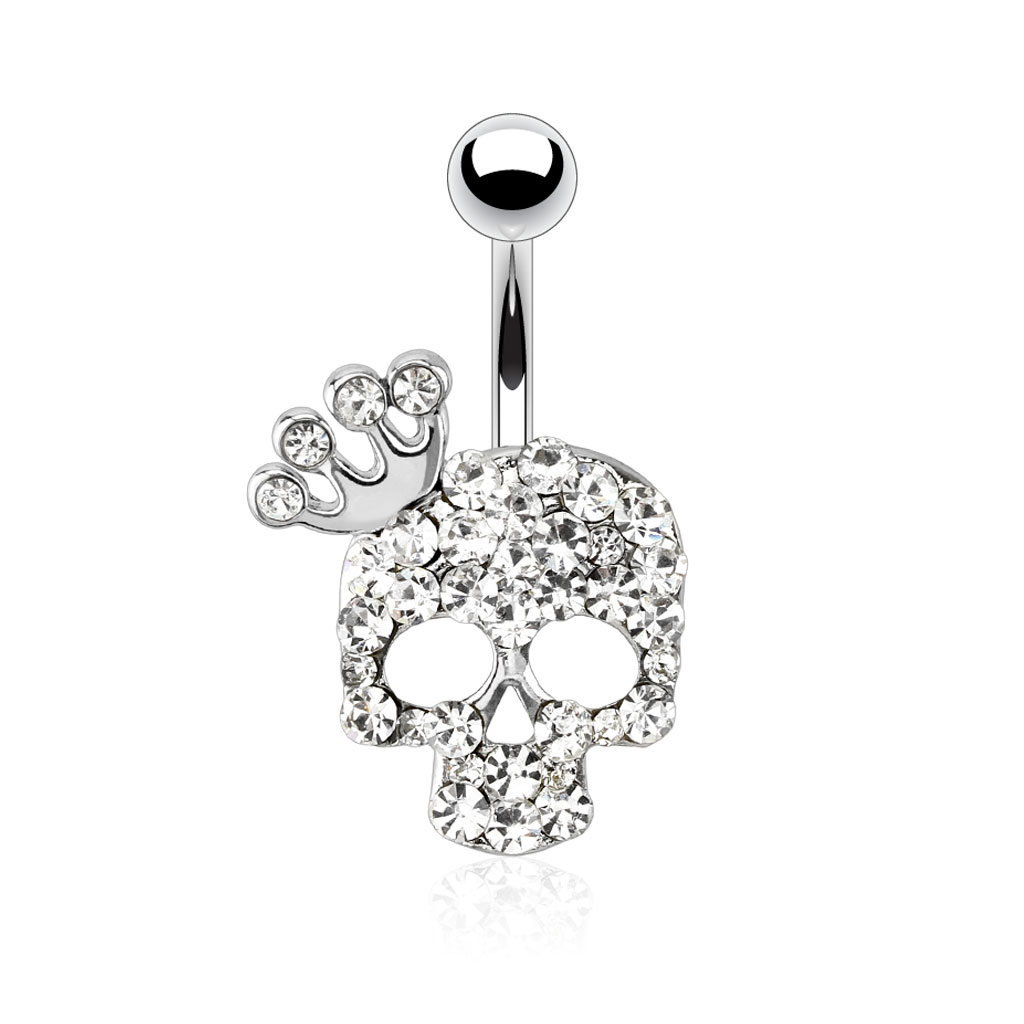 Naam: Navelpiercing met een steenbezette doodskop met kroon
