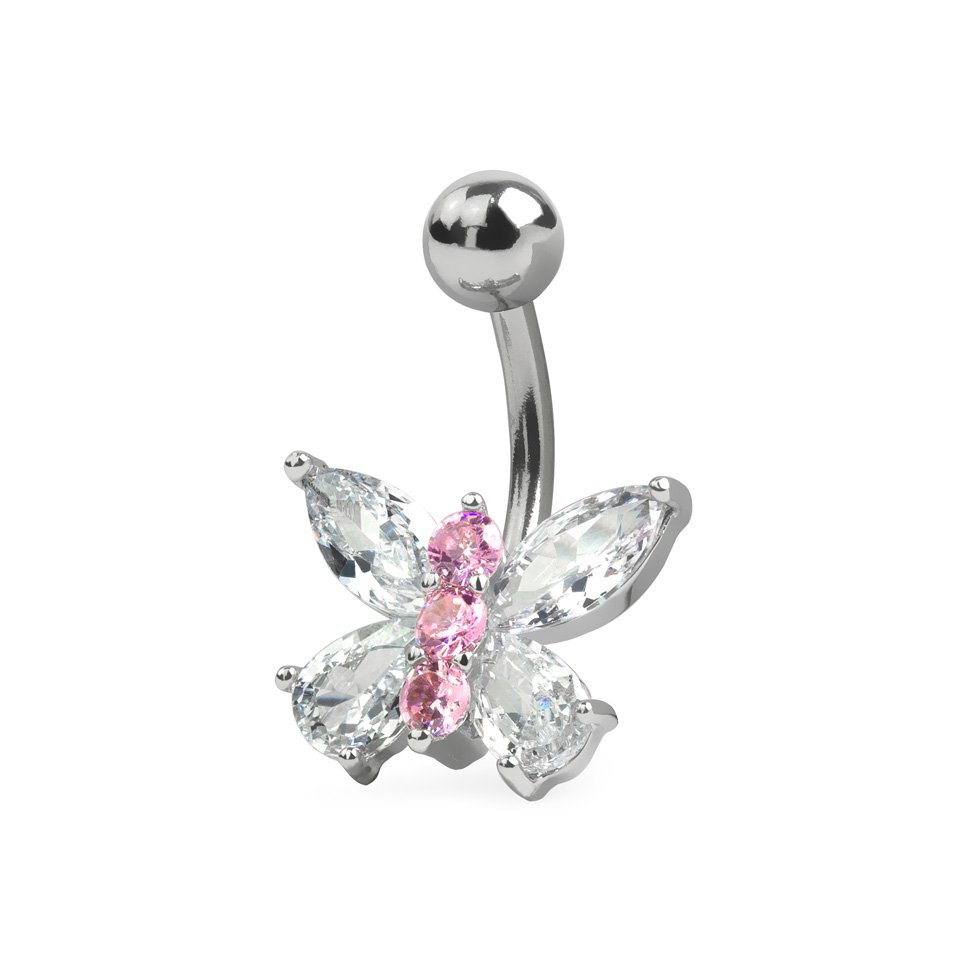 Vlinders zijn simpelweg gewoon heel mooi, en hier hebben we een even mooie navelpiercing met een vlinder, die uit samengestelde kristallen bestaat.