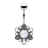 Navelpiercing met geoxideerde bloem met steen uit opaliet