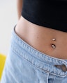 Je kan het sieraad in vier verschillende kleuren kiezen, waaronder zwart en goud, waarbij de staaf en de vangarmen dan de kleur hebben die jij uitkiest. De steentjes zijn daarentegen altijd transparant en fonkelend, ongeacht welk model je kiest. De manier waarop je dit sieraad in doet, gaat met behulp van een inwendig schroefdraad in de staaf. Je schroeft het bovenste balletje van het sieraad af, schuift de staaf door je piercing, schroeft het balletje er weer in en voila! Het prachtige sieraad zit precies waar het hoort: in je navel!