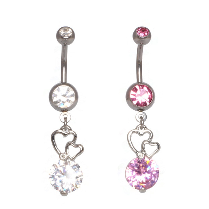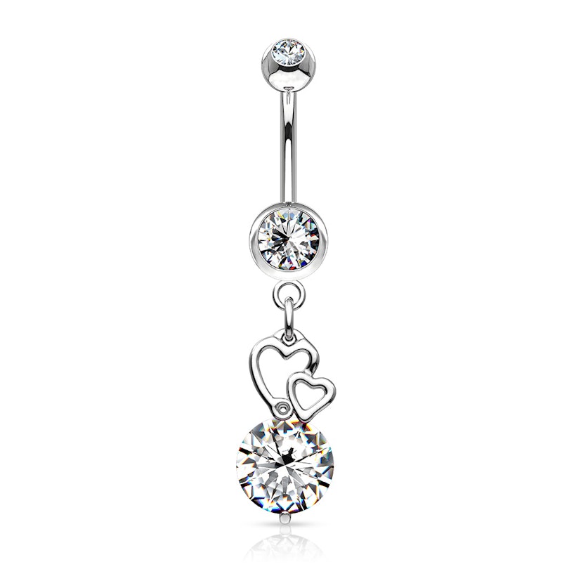 Naam: Navelpiercing met harten en een grote kristal