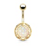 Opaalstenen zijn zowel mooi in hun uiterlijk maar ook in hun kleurenspel. Met de navelpiercing die je op de afbeelding hierboven ziet, krijg je ook een opaalsteen in je sieraad - alleen is dit een ingekapselde opaalsteen. De steen zit namelijk achter een soort raster dat op vissenschubben lijkt. Toch is de opaalsteen heel duidelijk te zien achter het raster, vooral wanneer het licht er op val. We willen wel graag vermelden dat het hier om een synthetische opaalsteen gaat, maar dat doet niets af aan de schoonheid - wel aan de prijs daarentegen.