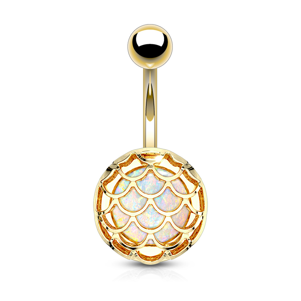 Navelpiercing met ingekapselde opaalsteen in schubbenontwerp