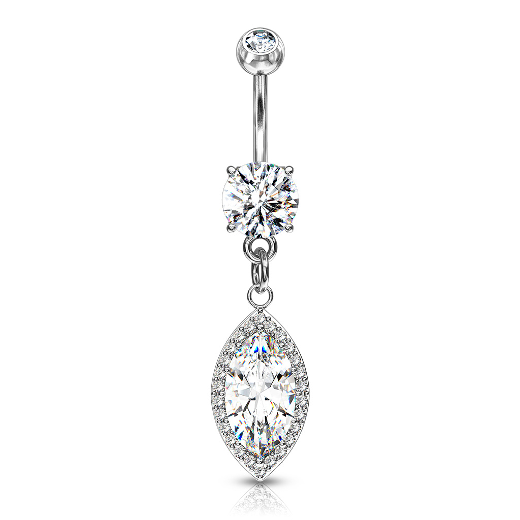 Naam: Navelpiercing met marquise-vormige steen in hanger