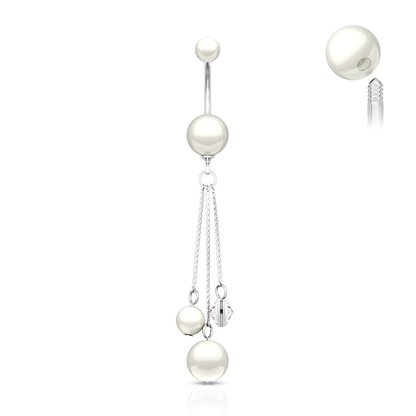Naam: Navelring met acryl parelmoeren balletjes en hanger