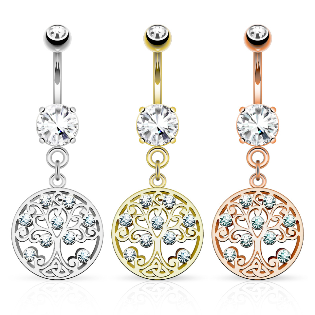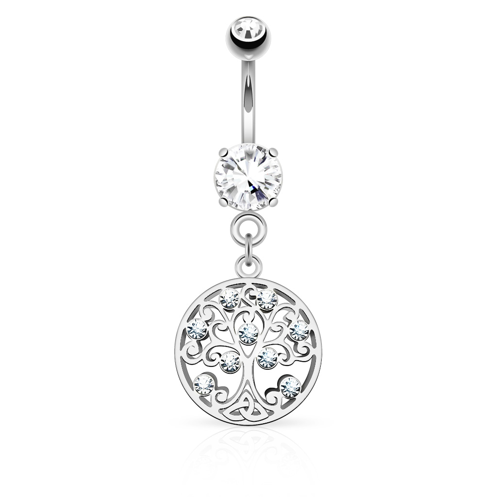 Naam: Navelpiercing met steentjes en levensboom als hanger
