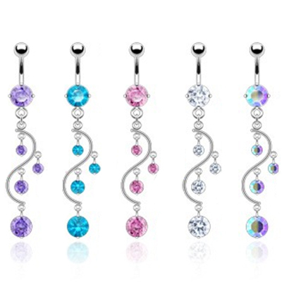 Naam: Navelpiercing met stenen in s-vorm