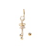 De navelpiercing kan worden geselecteerd in drie verschillende materiaalkleuren, een zilverkleurige glanzende versie en twee goudkleurige varianten. Het is alleen de coating die het verschil maakt, verder zijn de sieraden identiek als het gaat om ontwerp en afmetingen.