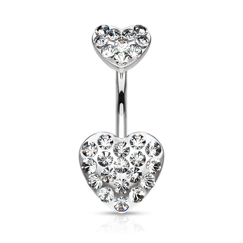 Het sieraad is gemaakt van chirurgisch staal en heeft een 10 mm lange staaf. Maar in plaats van een doorsnee top- en onderballetje, is er bij dit sieraad gekozen voor twee mooie hartjes met steentjes. Dat is ook vrijwel het enige dat te zien is als je het sieraad draagt. De vele kleine steentjes zijn allemaal facet geslepen, en deze reflecteren het licht dat vanuit alle hoeken komt dan ook prachtig. Dit zorgt ervoor dat het sieraad prachtig fonkelt in je navel. Je kunt kiezen tussen vijf frisse kleuren voor je hartjes, die allemaal even mooi zijn. Alleen jij hoeft slechts nog te kiezen welke het meeste in de smaak valt.