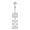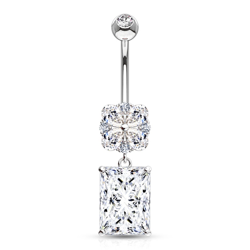 Navelpiercing uit 14 karaats goud met een bloem en een vierhoekige steen