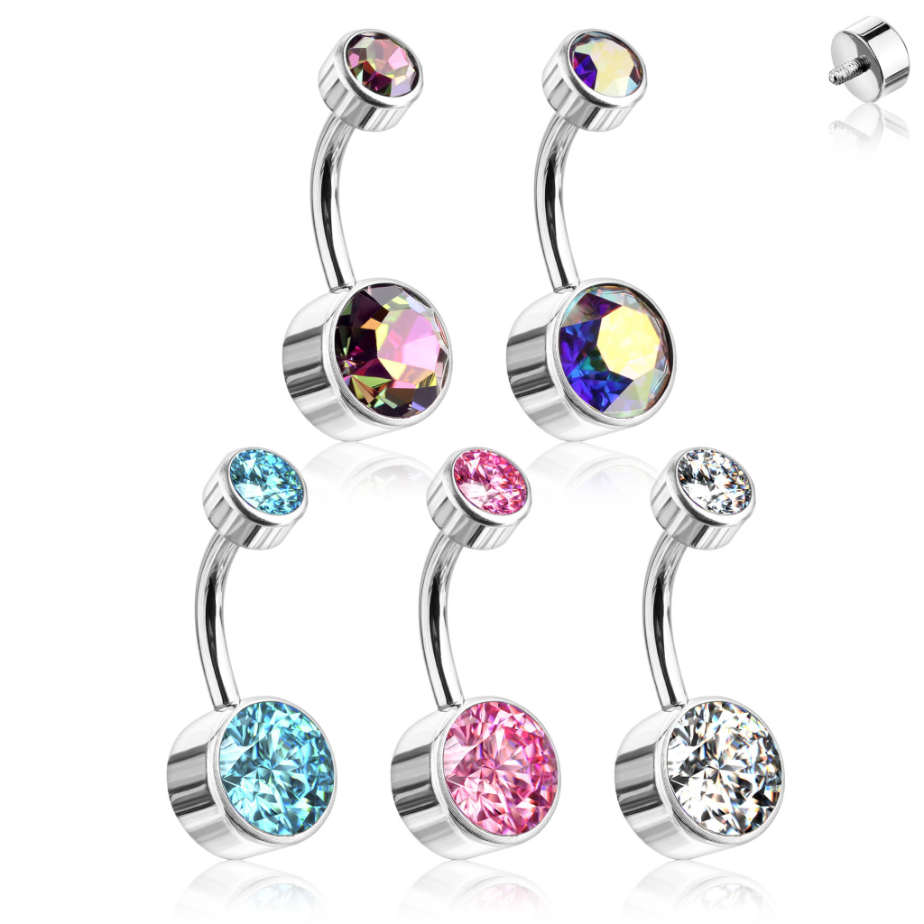 Dit navelsieraad is beschikbaar met verschillende kleuren steentjes. Kies jouw favoriet!