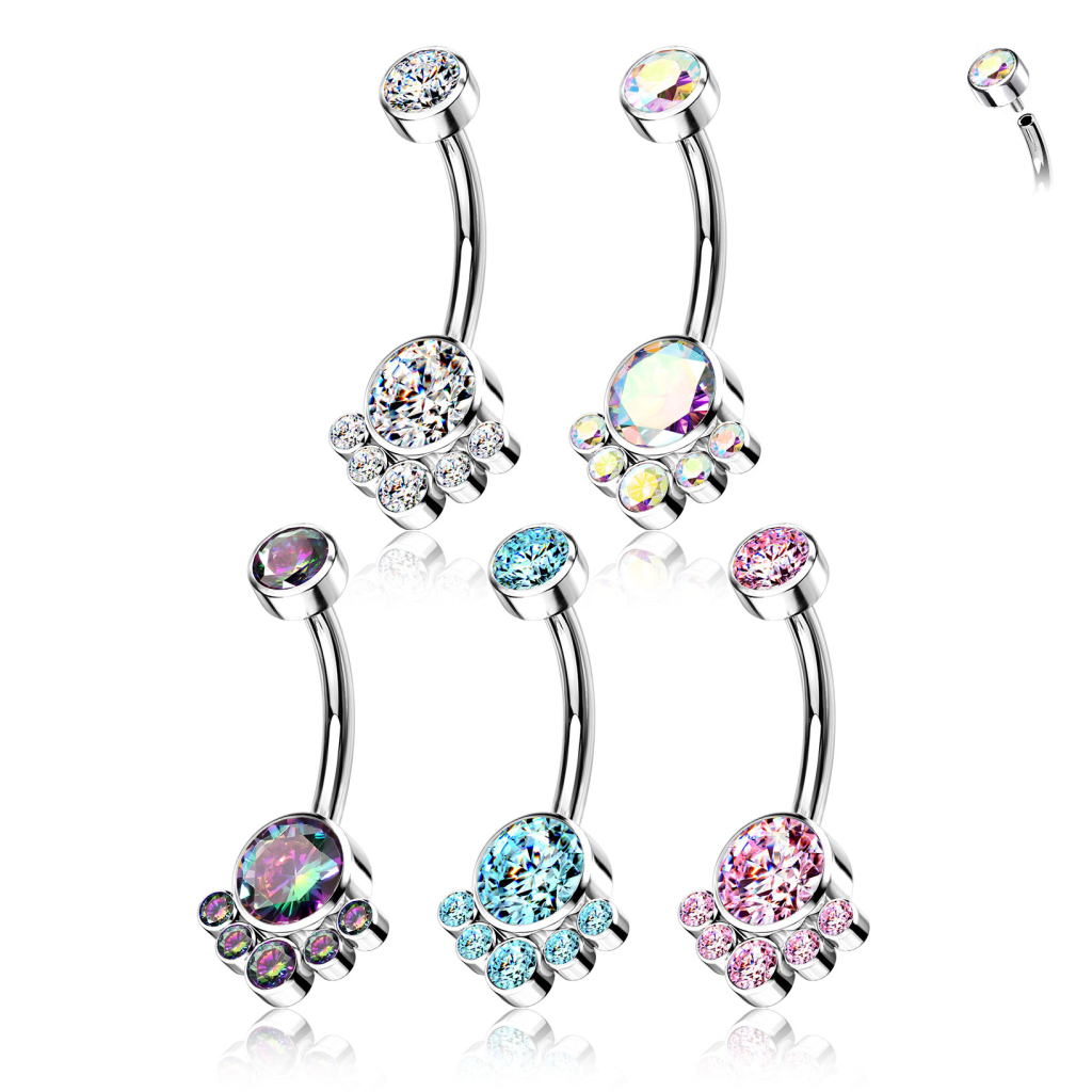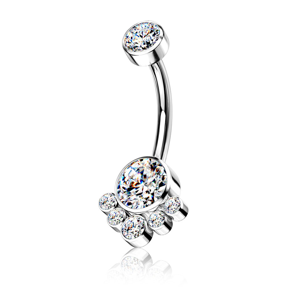 Je ziet hier een sieraad van topkwaliteit. Het materiaal is titanium en het sieraad bevat een interne schroefdraad, wat je piercing beschermt tegen scheurtjes bij het in- en uitdoen. Daarnaast bevat dit sieraad veel steentjes die het licht prachtig weerkaatsen.