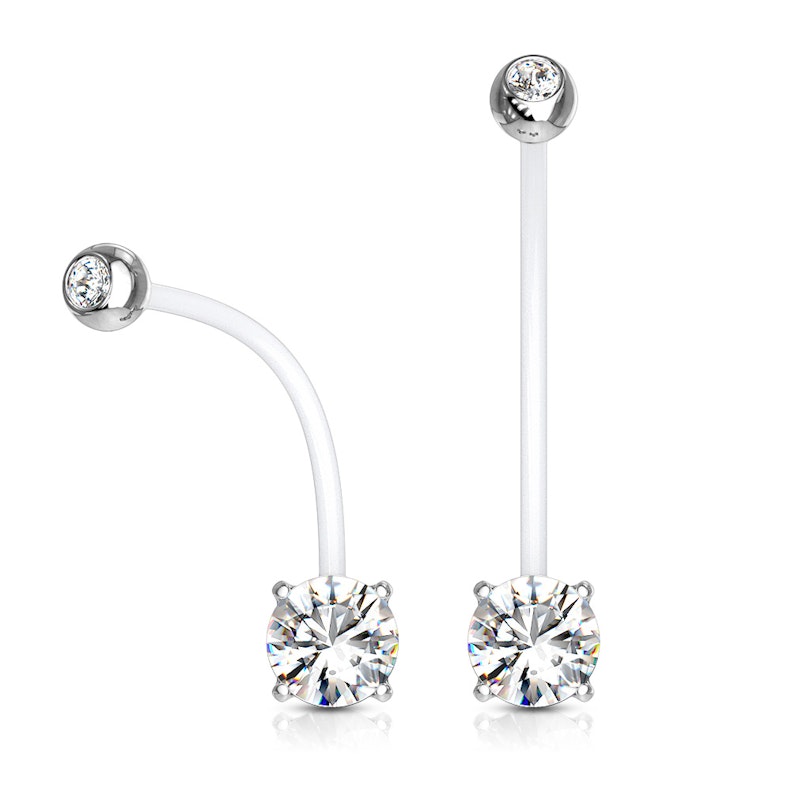 Deze navelpiercing kan namelijk gedurende de hele zwangerschap worden gedragen, met dank aan het staafje dat uit PTFE bestaat. Dit materiaal is zo zacht en flexibel dat het in alle vormen kan gebogen worden. Hierdoor past de staaf zich gemakkelijk aan je groeiende buik aan.