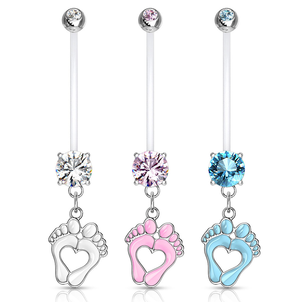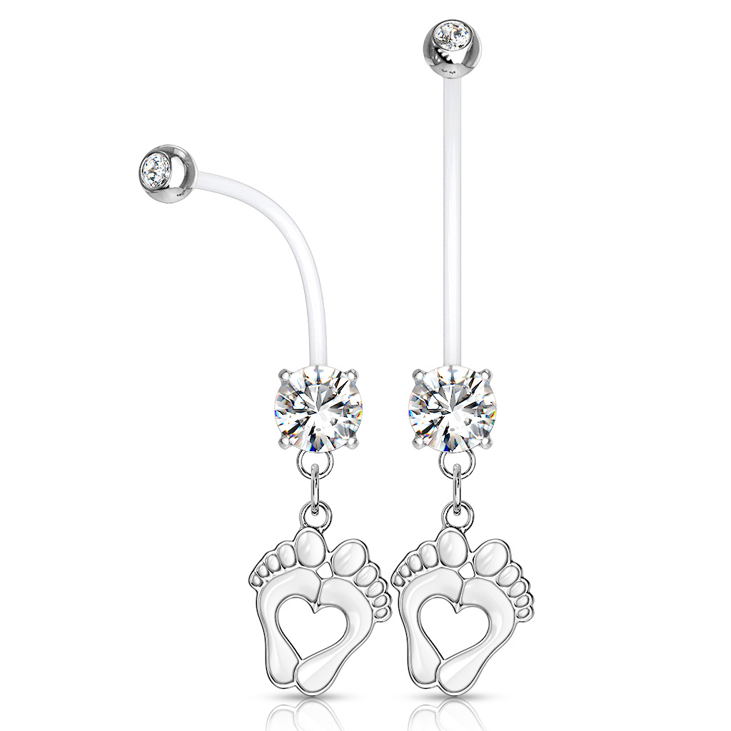 Naam: Navelpiercing voor zwangeren met voetjes in vorm van hartje