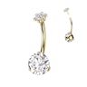 Deze navelring van titanium heeft een grote fonkelende zirkonia steen aan de onderkant en een schattige bloem bovenop. Dit sieraad is hypoalergeen, want titanium, maar daardoor ook duurzaam en lichtgewicht. Ideaal dus voor de gevoelige huid en draagcomfort.
