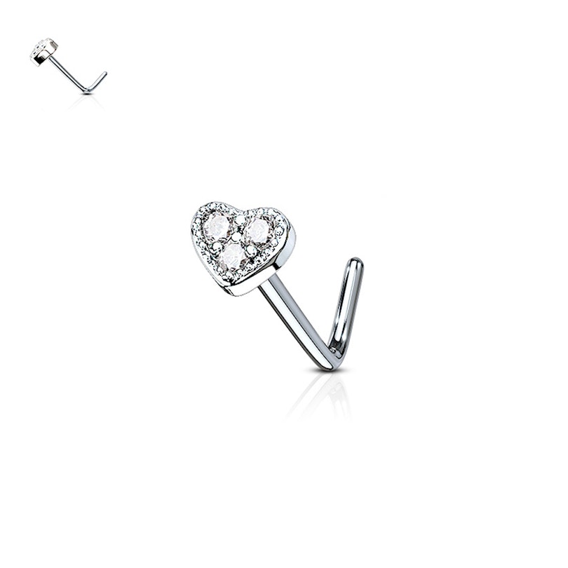 Deze neuspiercing is een beetje een combinatie tussen een neusstaaf en een neusschroef. Er zit geen gebogen stop aan het uiteinde van het sieraad, zoals dat bij een normaal neusschroefje wel het geval is, maar juist meer wat een neusstaafje heeft. Een neusstaafje is normaal gesproken gewoon een rechte staaf. Deze neuspiercing heeft een hoek van 90 graden aan het uiteinde, die aan de binnenkant van je neus komt te zitten en er voor gaat zorgen dat het sieraad er niet uit kan vallen als je hem draagt.