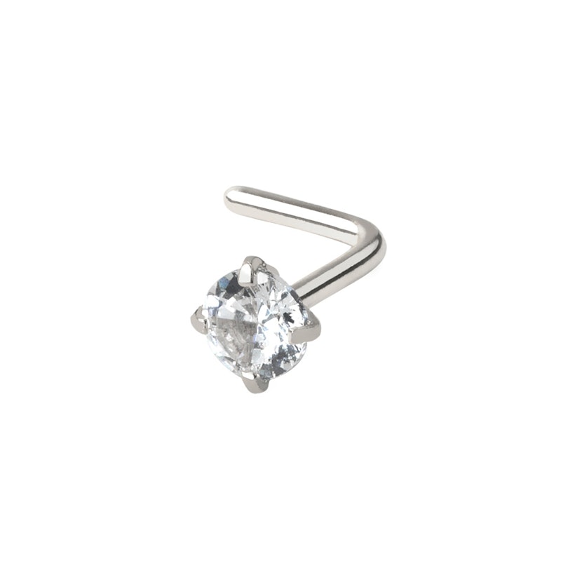 De neuspiercing heeft een L-vorm, waardoor het sieraad echt goed vast blijft zitten in je neus en er niet uit zal vallen. Alle uitgaves van deze neuspiercing hebben dezelfde maat - ze hebben een staafdikte van 0,8 mm en een lengte van 6 mm. De grootte van de steen varieert van 2,5 mm tot 3 mm, al naar gelang welk model je kiest - de steentjes zijn gesneden in hun vorm, en kunnen daarom soms wat kleiner zijn. Alle modellen van deze neuspiercing zijn gemaakt van chirurgisch staal.