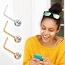 Deze mooie neuspiercing met de zachte knik in het midden is een soort middenweg tussen de meer eenvoudige neusstaaf en en neusschroef, die natuurlijk als een soort schroef aan de binnenkant van je neus zit en het sieraad op zijn plaats houdt. Hier ontvang je het beste van beide werelden, namelijk het eenvoudige ontwerp waardoor het heel praktisch en makkelijk is om het staafje in en uit te doen, en het idee van een schroef, wat er voor zorgt dat het sieraad goed en veilig in je neus zit en er niet zomaar uit kan vallen.