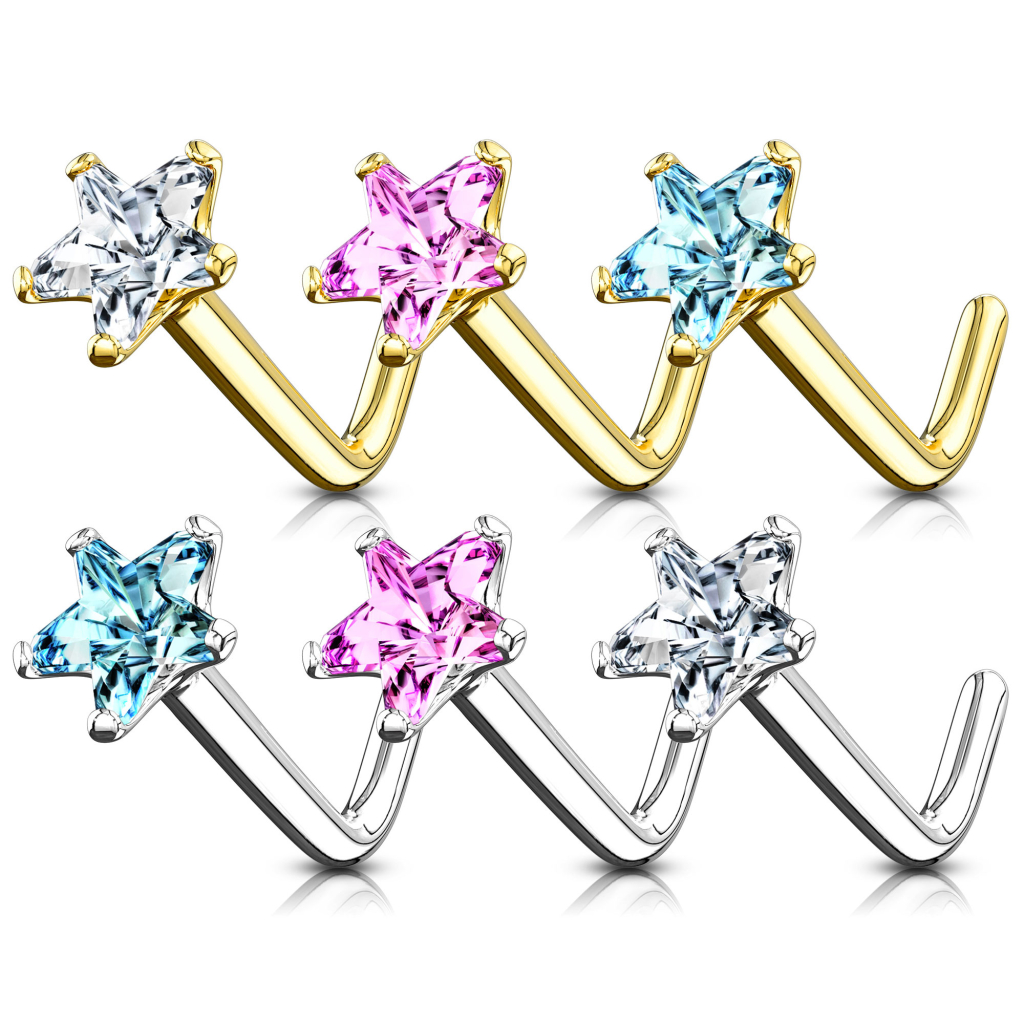 Straal net als de sterren met deze super mooie en vrouwelijke neuspiercing en zijn mooie, fonkelende stersteen. De steen is zo gesneden dat het vele vlakjes heeft en zo kan schitteren in het licht vanuit alle hoeken. Dit is dezelfde soort manier van slijpen die gebruikt wordt bij diamanten. Je kunt zelf kiezen tussen drie verschillende mooie kleuren voor het sterretje. Er is natuurlijk het transparante sterretje voor jou als je het liefst voor een neutrale en stijlvolle look gaat, een roze sterretje als je echt van een vrouwelijke look houdt en een turquoise sterretje als je van een frisse en koele look houdt.