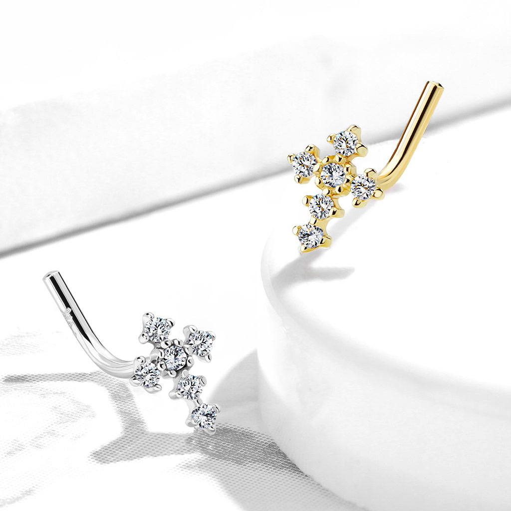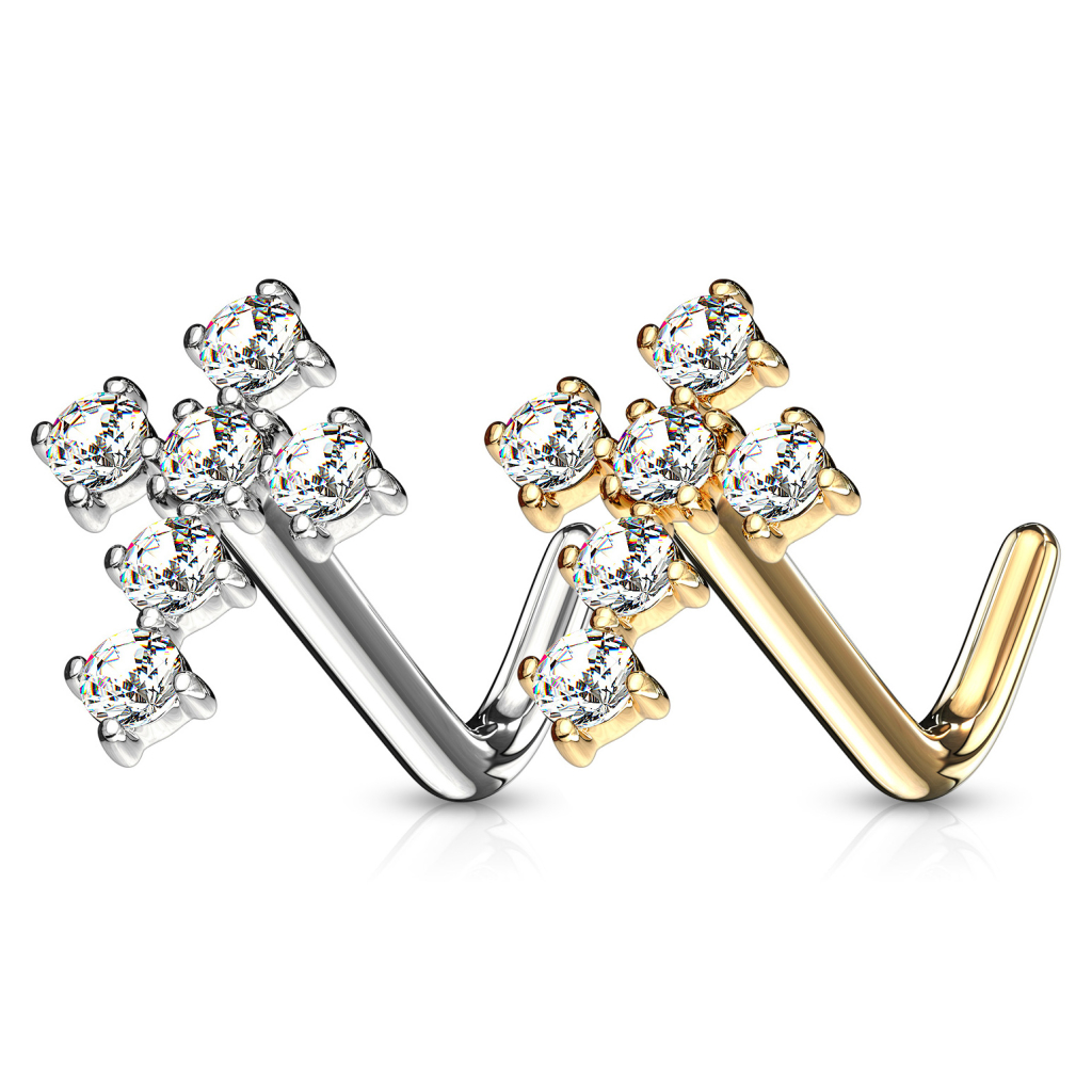 Deze neuspiercing is zeker weten spectaculair te noemen. Beginnend bij de mooie kleur van de staaf tot het vonkelende en in het oog springende kruis op de voorkant - het is gewoon perfect. Je kijkt hier namelijk naar een neuspiercing die gemaakt is van 14 karaats goud, waardoor het sieraad ook wel echt de stempell exclusief draagt, aangezien het een materiaal is dat van uitzonderlijk hoge kwaliteit is. Het sieraad is verkrijgbaar in verschillende materialen, waaronder de gewone 14 karaats gouden uitgave, maar ook de elegante 14 karaats witgouden uitgave. Het sieraad is voorzien van een kleine buiging van 90 graden, wat erg voordelig is als je het sieraad draagt. De hoek zit er namelijk zodat het sieraad niet uit je neus kan vallen wanneer je het in hebt. Het sieraad zit heel comfortabel, en het is heel eenvoudig om het sieraad in te doen.