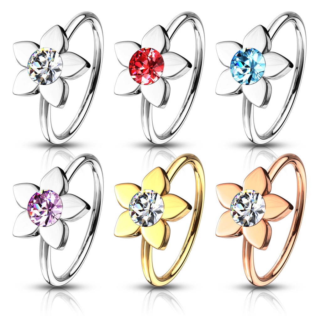 Naam: Neusring met lotusbloem en steentje