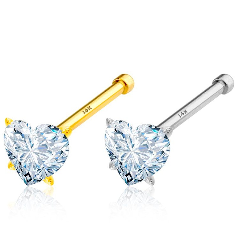 Naam: Neusstaaf van 14 karaats goud met hartjessteen