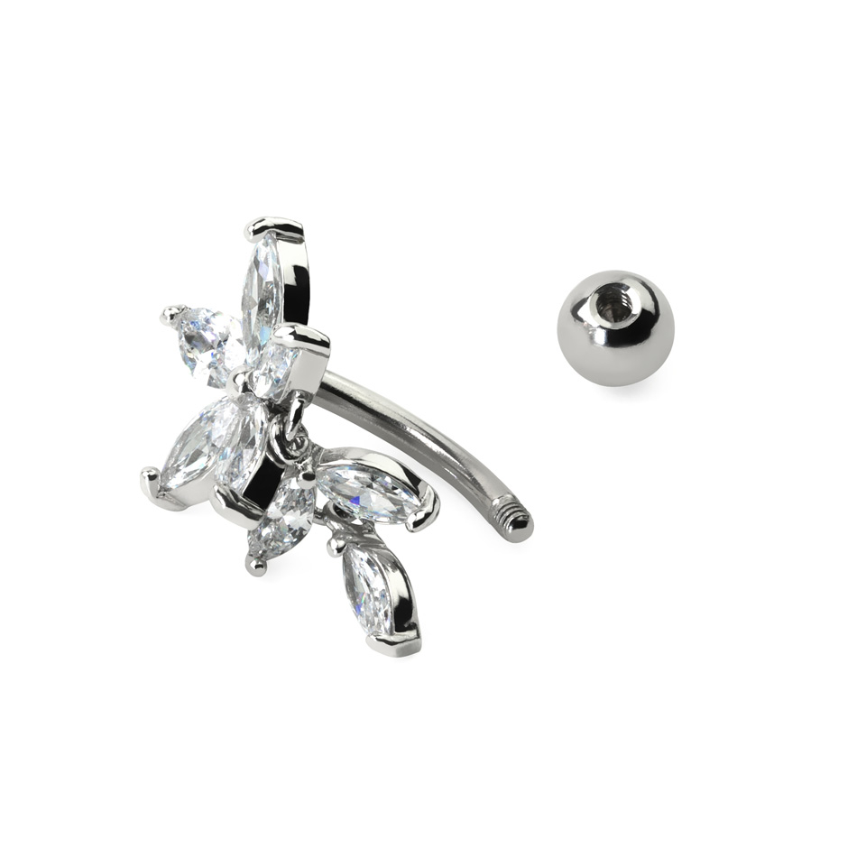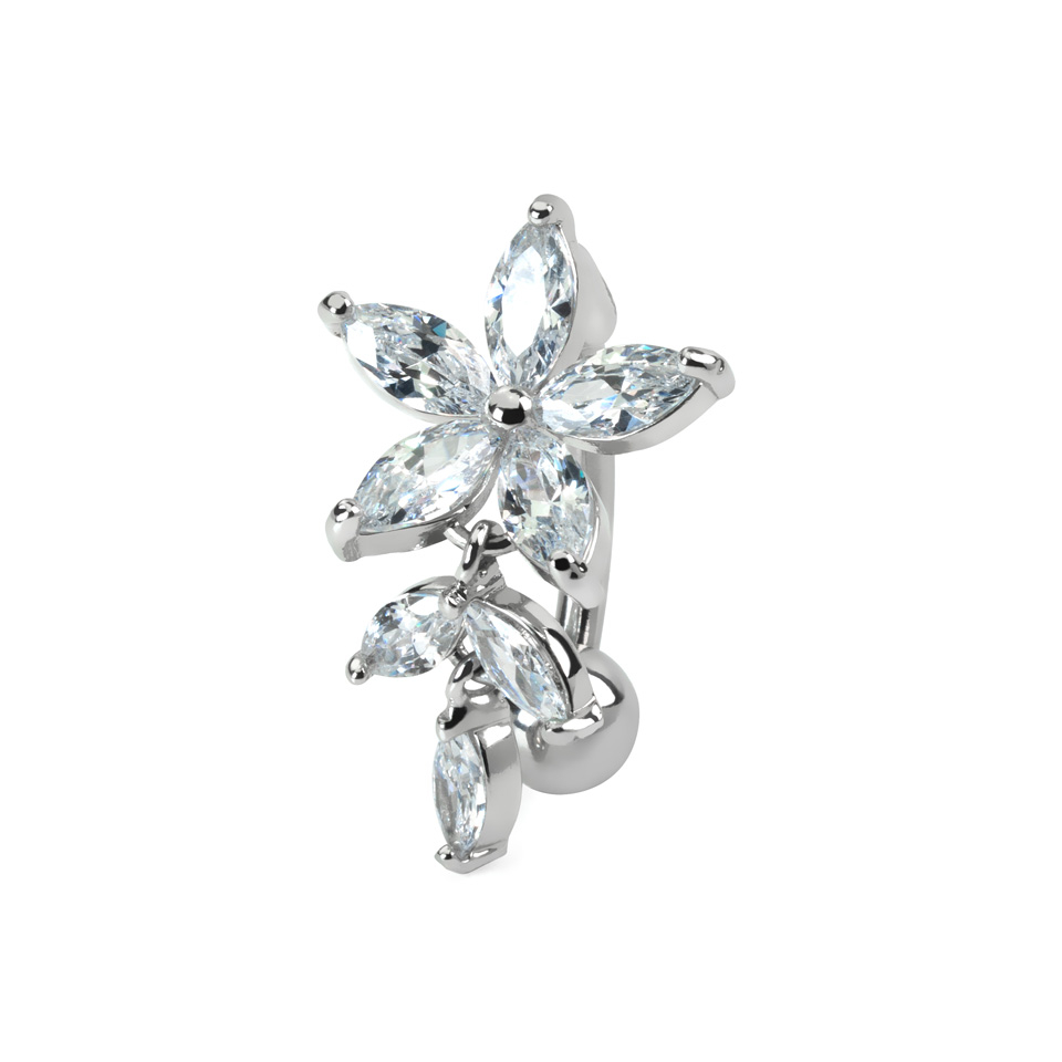Naam: Omgekeerde navelpiercing met bloem van steen