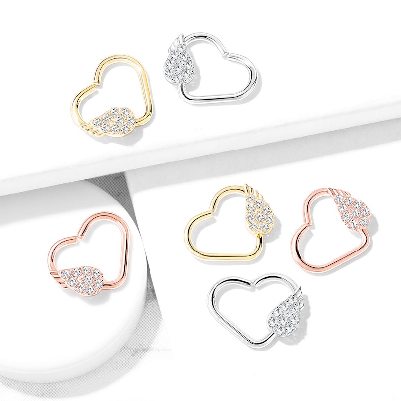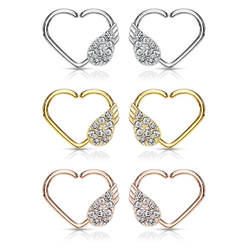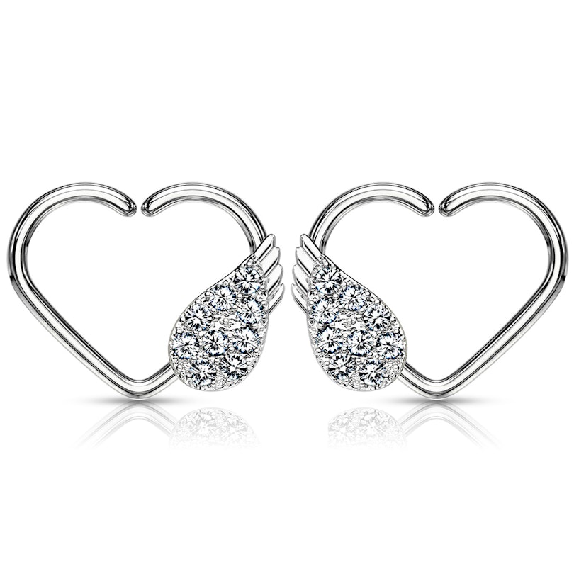 Naam: Oorpiercing in de vorm van een hartje met engelenvleugel