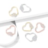 Er is een kleine engelenvleugel aan een zijde gemonteerd, die bedekt is met kleine heldere stenen. Als je het model voor het rechteroor selecteert, zal de vleugel ook aan de rechterkant zitten en vice versa als je links selecteert. Met andere woorden, je kunt niet hetzelfde model gebruiken voor zowel het linker als het rechteroor. Het kan wel, maar dan zit de vleugel omgedraaid en dat is niet de bedoeling. De afmetingen van de binnenkant van dit hart zijn 11 mm breed en 8 mm hoog. Zowel het hart als de vleugels zijn verguld met platina voor het zilverkleurige model en verguld met 14 karaats bladgoud voor de twee goudkleurige modellen.