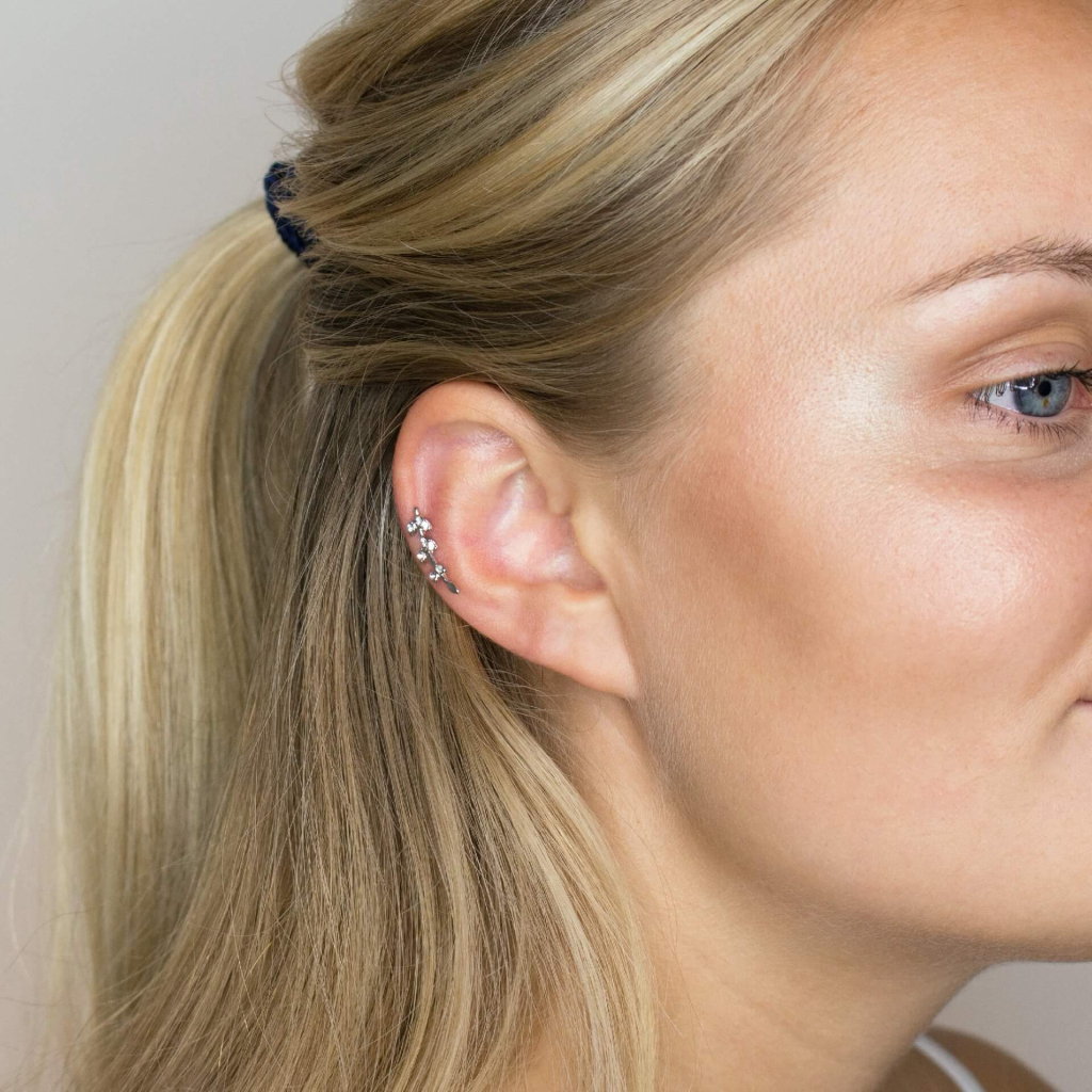 Het ziet er erg elegant uit. Ik zou willen dat er een kleinere maat was zodat het strakker om het oor zit.