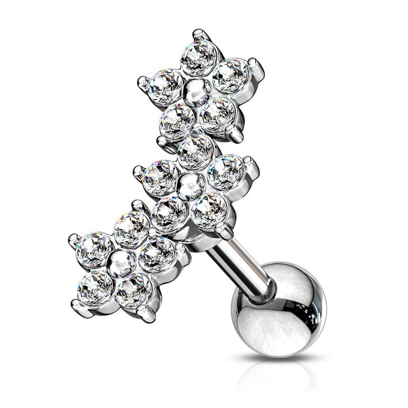 Naam: Oorpiercing met drie bloemen op een rij