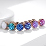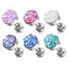 Hier ontvang je een kleine en discrete oorpiercing met een grote persoonlijkheid. Het sieraad meet 6 mm in lengte en heeft een top bal met dezelfde maat. Het is echter wat in de top bal zit wat het sieraad zo'n geweldige boost geeft. De top bal is namelijk uitgerust met een zogeheten druze steen, wat niet een steen is maar een oppervlak van kleine kristallen. De kristalformatie wordt in verschillende kleuren aangetroffen, en er zijn zoveel kleuren als de regenboog rijk is - en bij dit sieraad kun je dus ook tussen verschillende kleuren kiezen, zoals bijvoorbeeld blauw en wit. Het gave aan deze kristallen is dat je niet alleen de hoofdkleur die je zelf kiest ontvangt, maar ook heel veel andere kleuren in de kristallen wanneer het licht weerkaatst wordt door het sieraad.