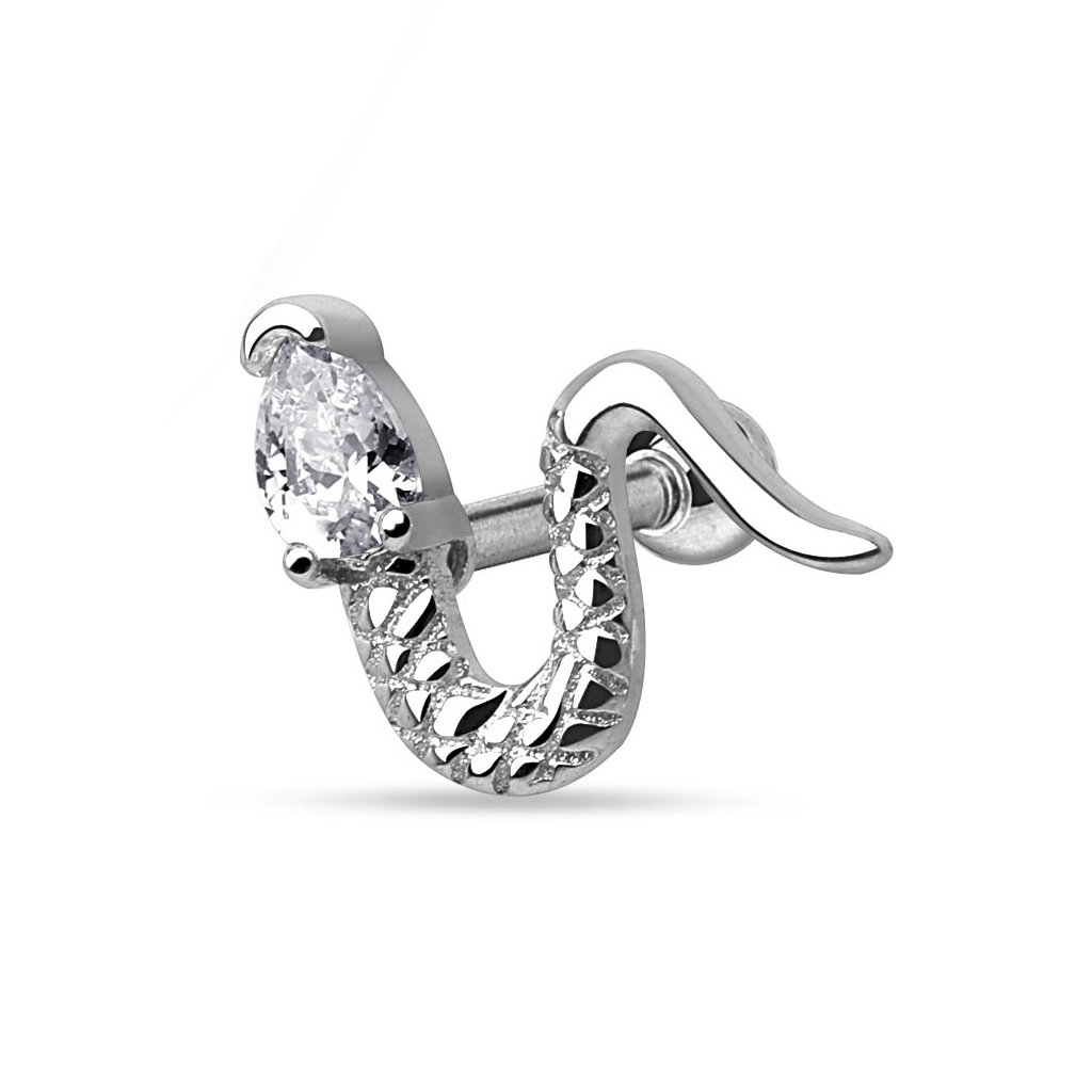Draag deze kronkelende slang in je tragus-, helix-, of oorlelpiercing. Dit sieraad is namelijk voor alle piercings waarvan de maten overeenkomen zeer geschikt.