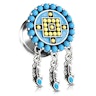 Als je een beetje iets weet over de Azteken ken je waarschijnlijk ook hun herkenbare piramides, die je op de plug ziet als kleine gele acrylkralen van bovenaf gezien. De vier buitenste gele kralen zijn de trap naar de tempel bovenaan de piramide. Rond de piramide zit een blauw emaille en rond en aan de rond zijn rondom blauwe acrylballen aangebracht. En niet alleen dat, je vindt onder de plug drie vrijhangende veren, waar aan de onderkant ook blauw emaille is toegevoegd, dat overeenkomt met de rest van het sieraad. Het metaal aan de voorkant van de plug heeft een geoxideerde afwerking, dus het ziet er een beetje antiek uit - Het geeft een beetje meer leven en charme aan het sieraad. Je kunt de plug kiezen in de maten 8 - 16 mm.