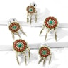 Deze plug is gebouwd met een decoratieve voorkant die een bloem moet zijn. De bloem heeft in het midden een prachtige turquoise acrylkraal die goed past bij de rode kralen rond de rand. Naast de rand met kralen zit nog een kleine rand - Deze rand bestaat echter uit kleine bladeren die het ontwerp van de bloem echt doen opvallen. Niet alleen is er een bloem en veel kleine details, deze plug heeft ook drie kleine veertje aan de onderkant van de voorkant toegevoegd. De veren hangen vrij zodat ze bewegen als je lichaam beweegt. De plug is gemaakt van chirurgisch staal en kan in verschillende maten worden gekozen. De kleinste meet 8 mm en de grootste meet 16 mm. De bloem zelf is gemaakt van messing, dat een minder antieke gouden coating heeft.