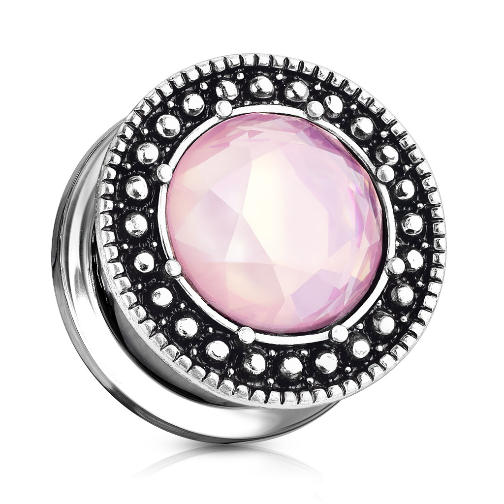 Naam: Plug met geoxideerde front en roze steen