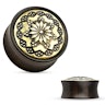 Het prachtige ontwerp aan de voorkant van het sieraad heeft een gouden laagje, dat waanzinnig mooi contrasteert met de kleur van het hout. Deze plug kan je krijgen met een diameter tot 25 mm, waardoor hij geschikt is voor zelfs de grootste stretches.