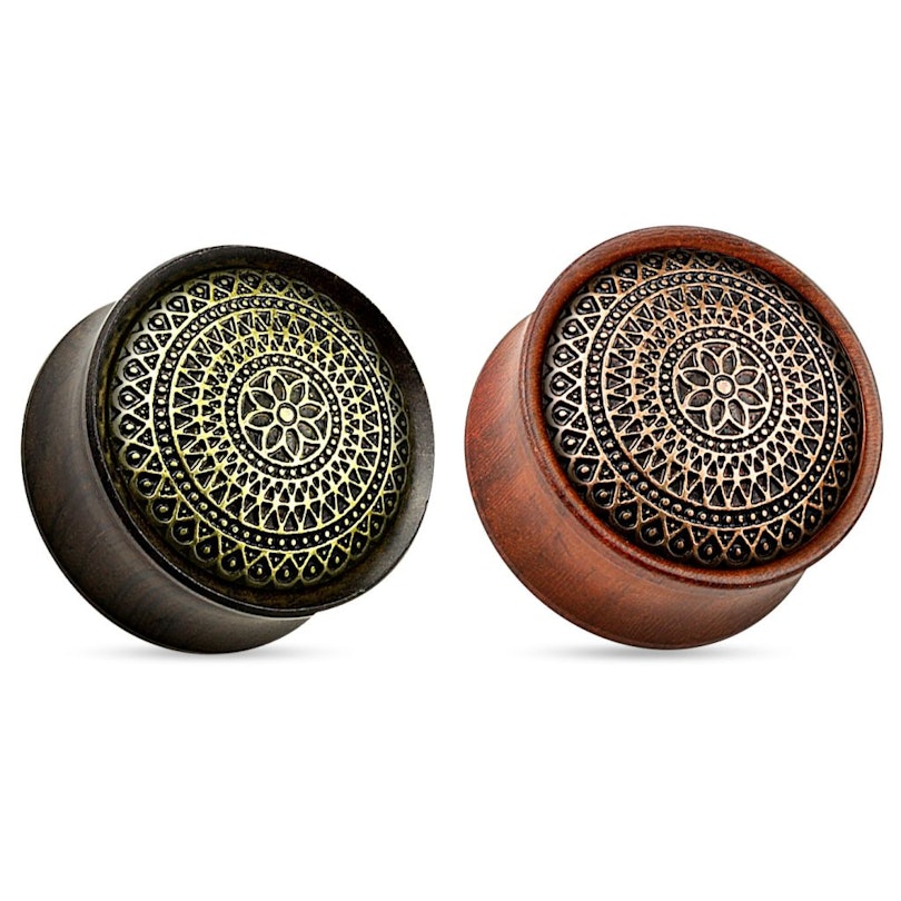 Zorg ervoor dat je stretch er wat specialer uitziet met deze mooie, houten plug versierd met een geometrisch ontwerp dat goud of rood gekleurd is. In het midden van de plug zit een prachtige bloem die omringd is door een fantastisch geometrisch ontwerp. Organische materialen zoals hout zorgen ervoor dat de huid van je stretch kan blijven ademen terwijl je je plug draagt, dat zorgt er meteen ook voor dat er geen onaangename geurtjes ontstaan. Deze plug is beschikbaar in twee verschillende houtsoorten. Kies tussen het lichtere pallisanderhout of het donkerdere diospyroshout. De voorkant van de plug is gemaakt van messing dat een roodachtige tint heeft in de plug van pallisanderhout en een goudachtige kleur heeft in de plug van diospyroshout. Hoe het ook zij, beide kleuren combineren erg goed met de kleur van het hout. De gouden kleur contrasteert goed met het donkere diospyroshout en geeft de plug een antieke look, terwijl het rood van het pallisanderhout goed matcht met het rood van het messingontwerp.
