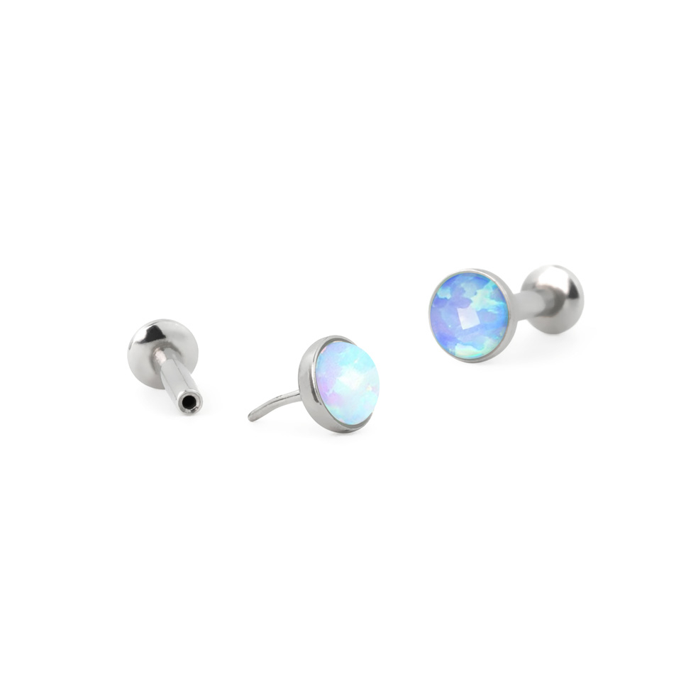 De labret is verkrijgbaar in verschillende lengtes en in twee steenkleuren. Wanneer je de lengte kiest, kan je ook meteen de grootte van het balletje kiezen.
