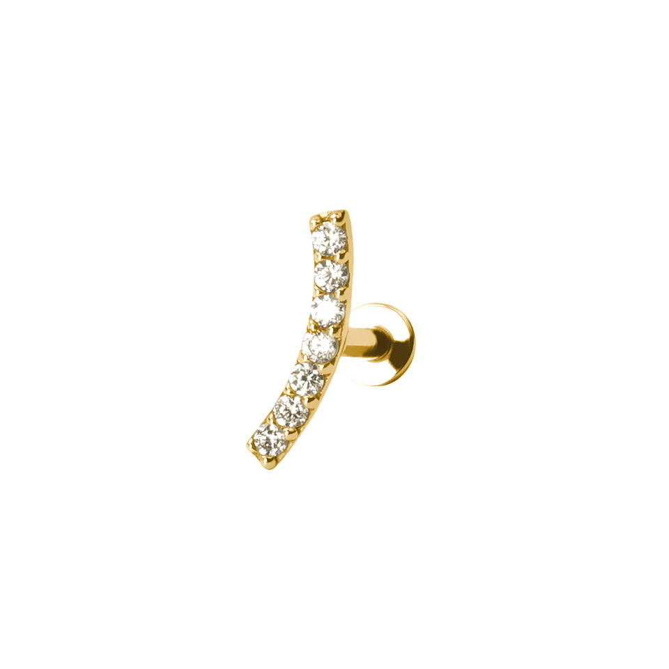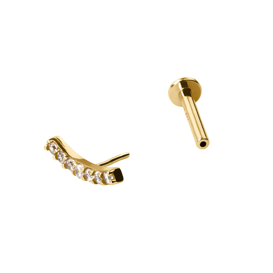 Dit labret is gemaakt van 14 karaats goud en is beschikbaar in twee versies: geelgoud en witgoud. Je kunt ook kiezen tussen twee lengtes van de staaf: 6 mm of 8 mm. De gebogen top bevat 7 zirconia stenen die perfect vormen naar, bijvoorbeeld, je helix. Je kiest natuurlijk zelf waar je dit sieraad wilt gebruiken - wees creatief! Dit labret maakt indruk door haar elegantie, een echt tijdloos sieraad.