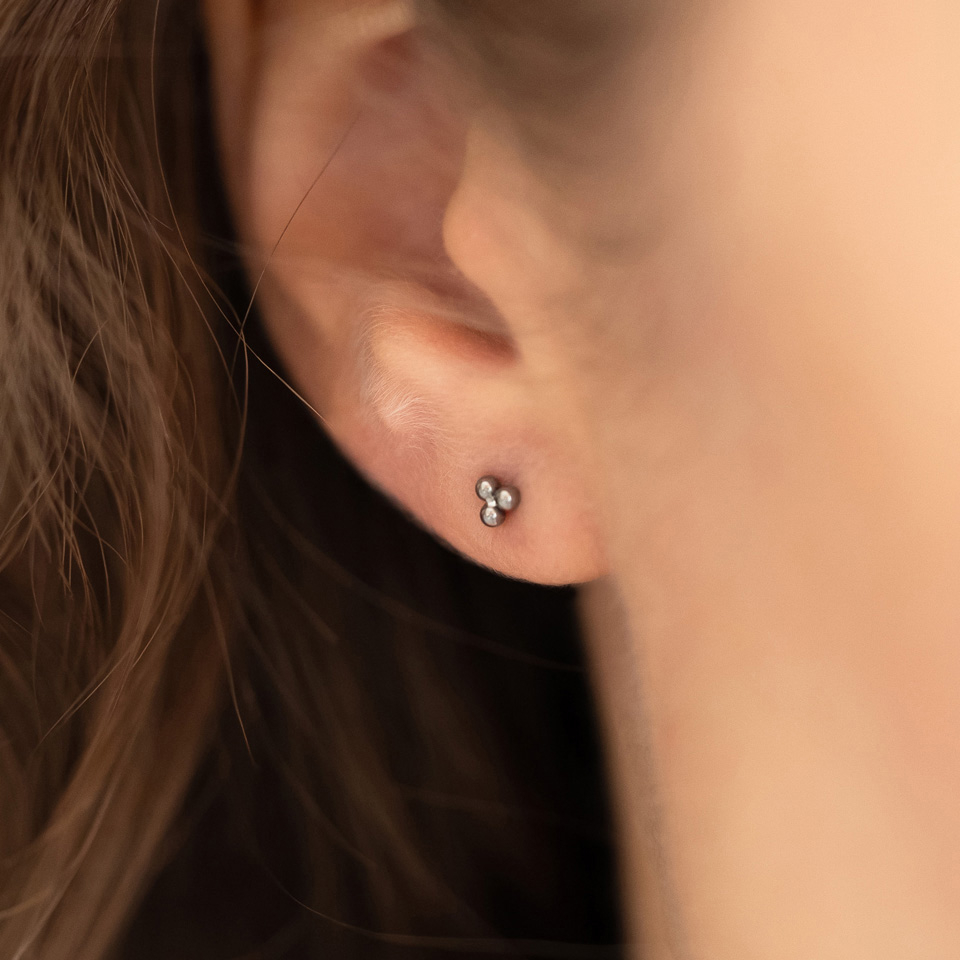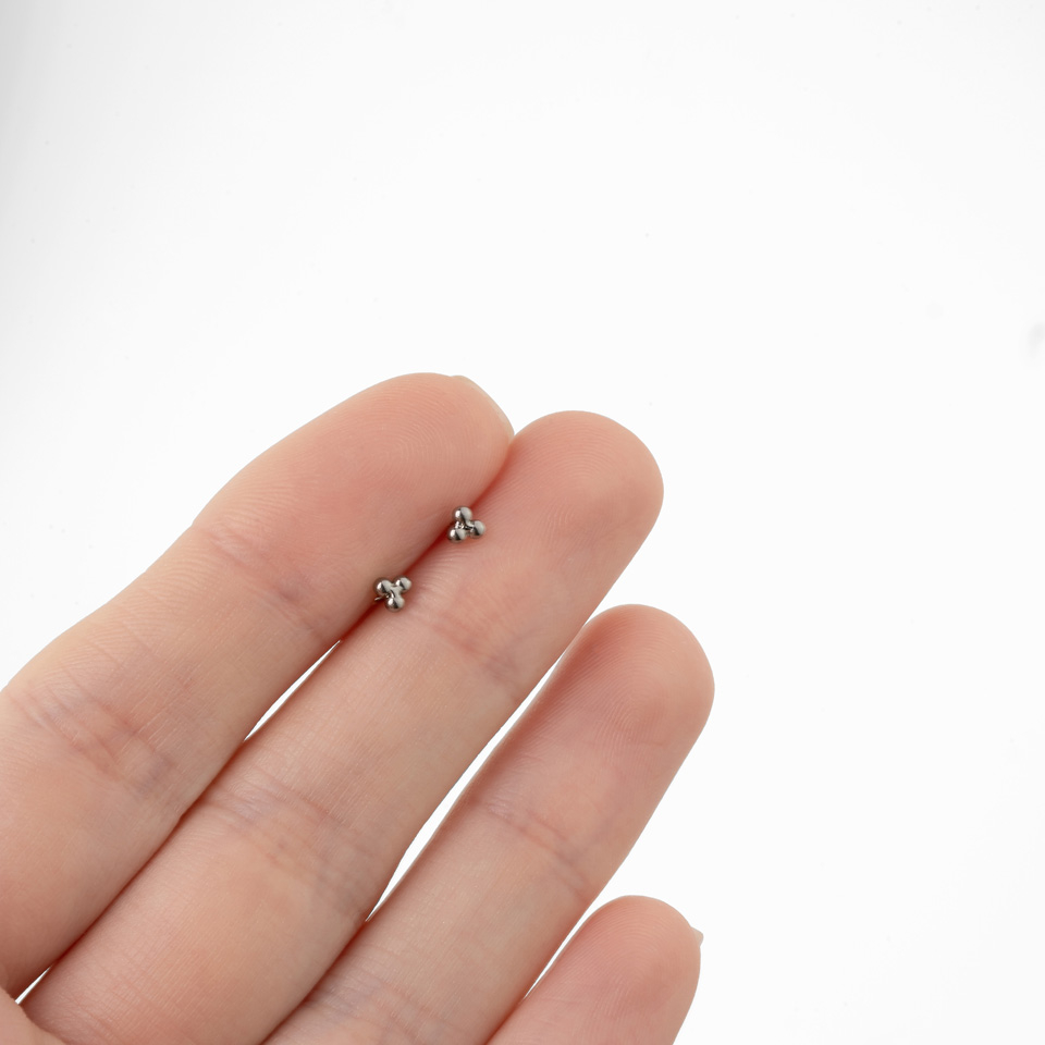 Naam: Push-in labret van titanium met driehoekig balletjes design