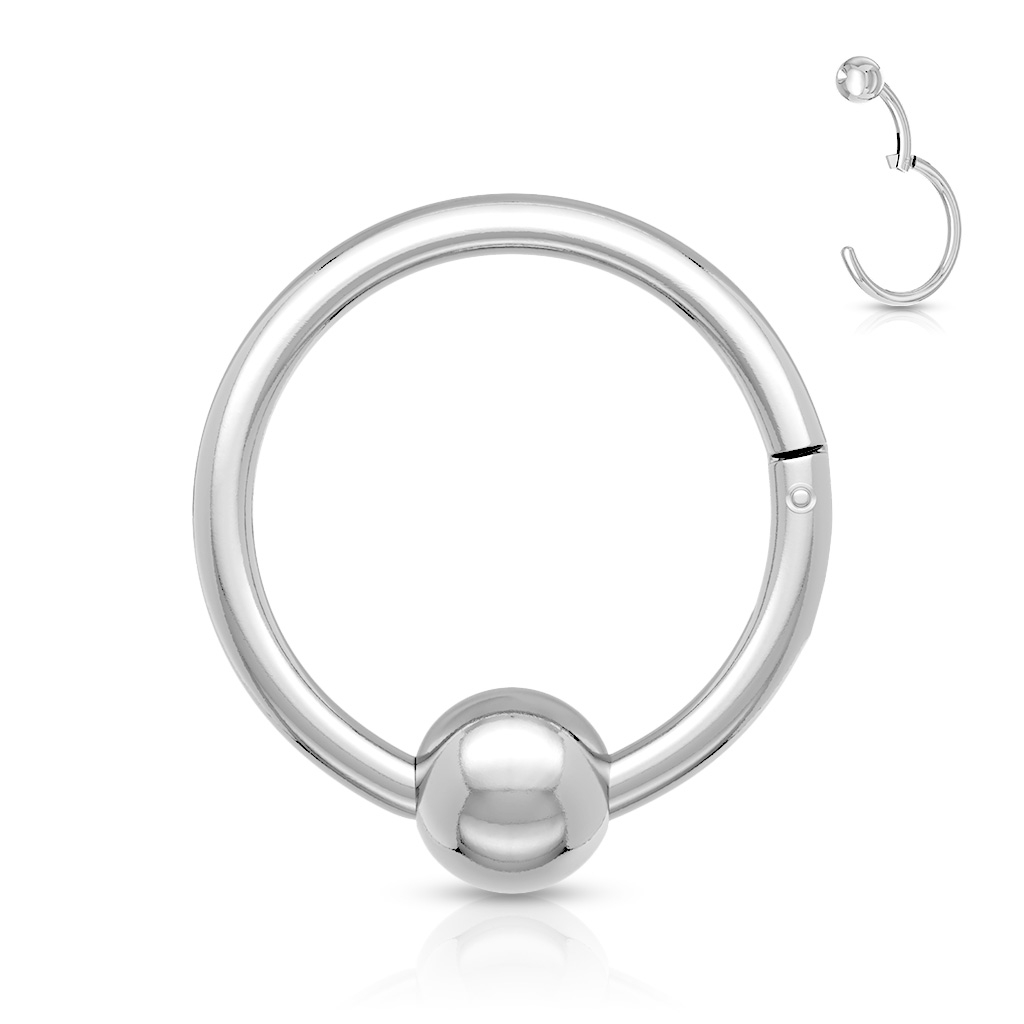 Normaal gesproken, als je het over ringen met een bal hebt, is het de bal zelf dat het vergrendelingsdeel is wat kan worden verwijderd en weer kan worden geplaatst. Dit is hier echter niet het geval. Op deze ring maakt de bal deel uit van de ring zelf. De bal is bevestigd aan een kleine staaf, die vervolgens met een scharnier aan de rest van de ring is bevestigd. Hiermee kun je het sieraad eenvoudig openen door het kleine staafje te grijpen om het scharnier te openen.