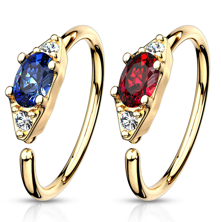 Deze ring is vervaardigd uit chirurgisch staal. Zoals je op de foto kunt zien, heeft het echter een gouden kleur. Dit komt door de coating die het juweel heeft gekregen - een deklaag van 14 karaats goud, wat de exclusiviteit ervan sterk verhoogt. Het sieraad is op zo'n manier gemaakt dat het ingebracht wordt door de uiteinden heen en weer te draaien, wat een groot voordeel is als je er niet van houdt te moeten vechten met een irritant scharnier.
